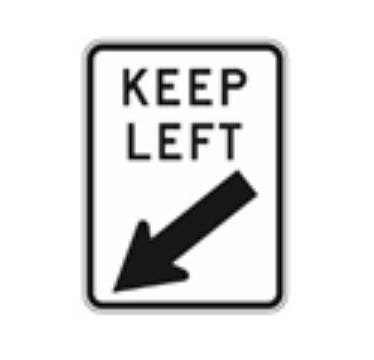 Whenever you see this sign called Keep Left, keep your vehicle a bit slower than the average speed and be at the left side, this will help you avoid accidents.
