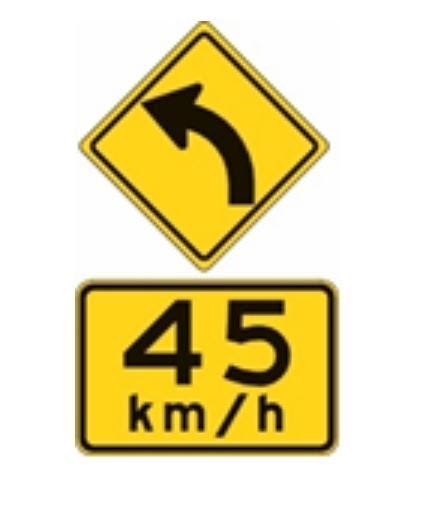These are the Advisory Speed Signs as shown in the picture above; this means you need to keep your vehicle at a speed limit of 45 kilometres per hour which will keep your vehicle's speed in the limit as the vehicles might take a turn here referring to the sign above it.