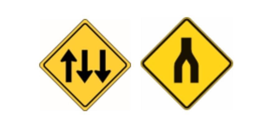 When you see these signs, keep in mind that the layout of the road will be changing, so you must drive accordingly and be careful.